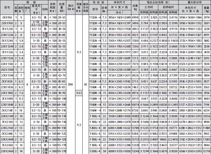 GB6064-85《ZKX型直線振動篩》選用須知: